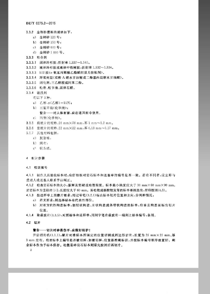DZ/T 0275.2-2015 岩矿鉴定技术规范 第2部分:岩石薄片制样