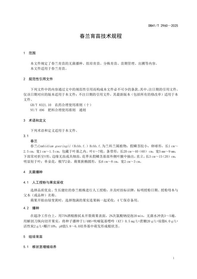 DB41/T 2960-2025 春兰育苗技术规程