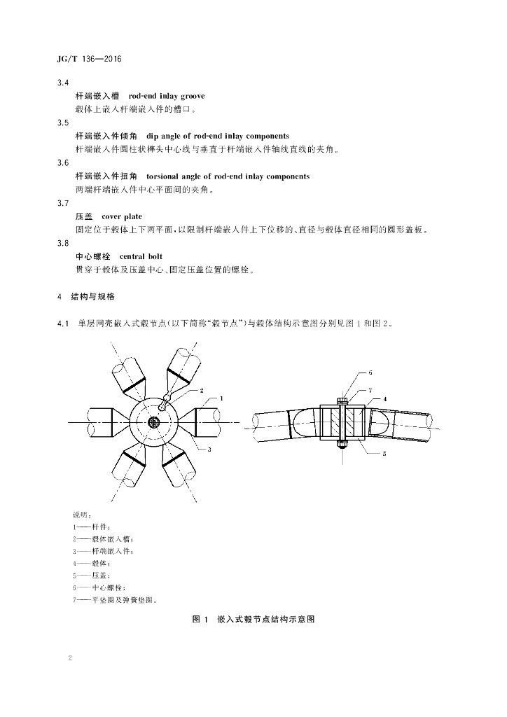 JG/T 136-2016 单层网壳嵌入式毂节点