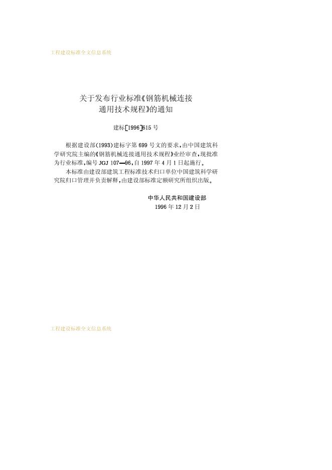 JGJ 107-1996 钢筋机械连接通用技术规程