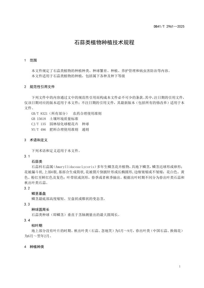 DB41/T 2961-2025 石蒜类植物种植技术规程