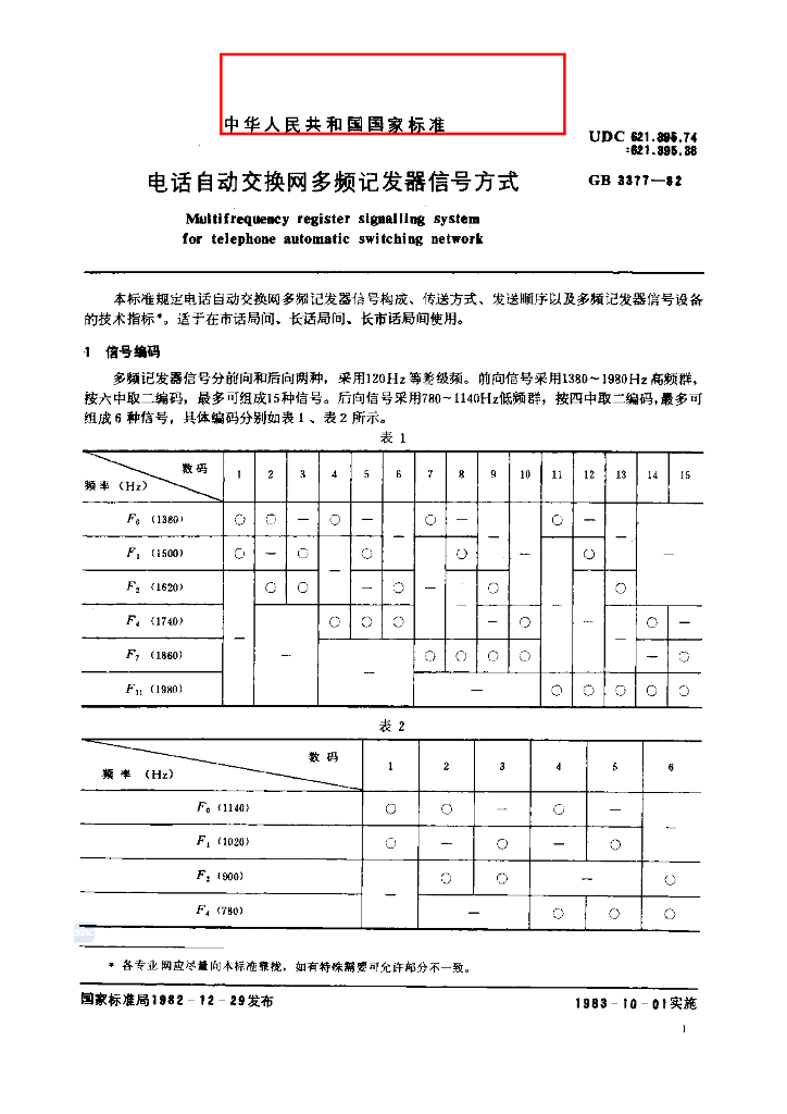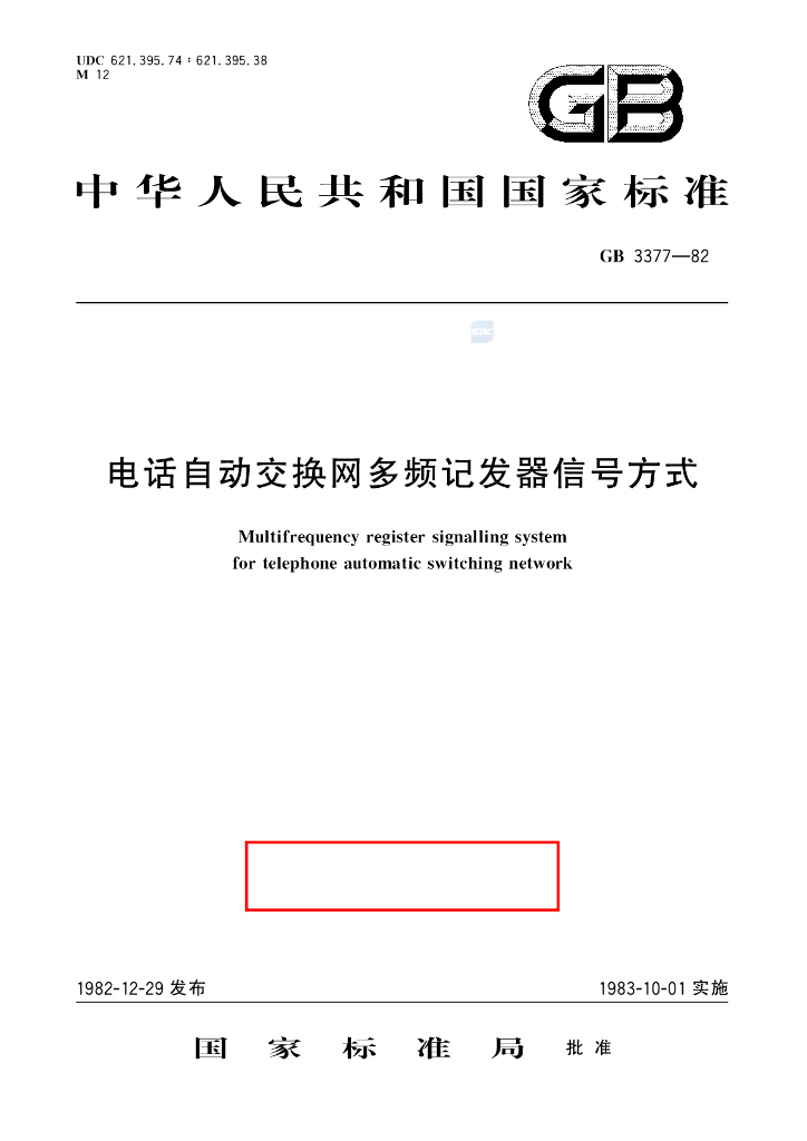 GB/T 3377-1982 电话自动交换网多频记发器信号方式