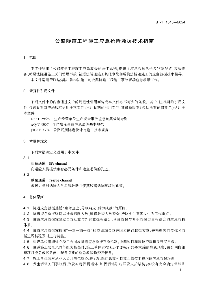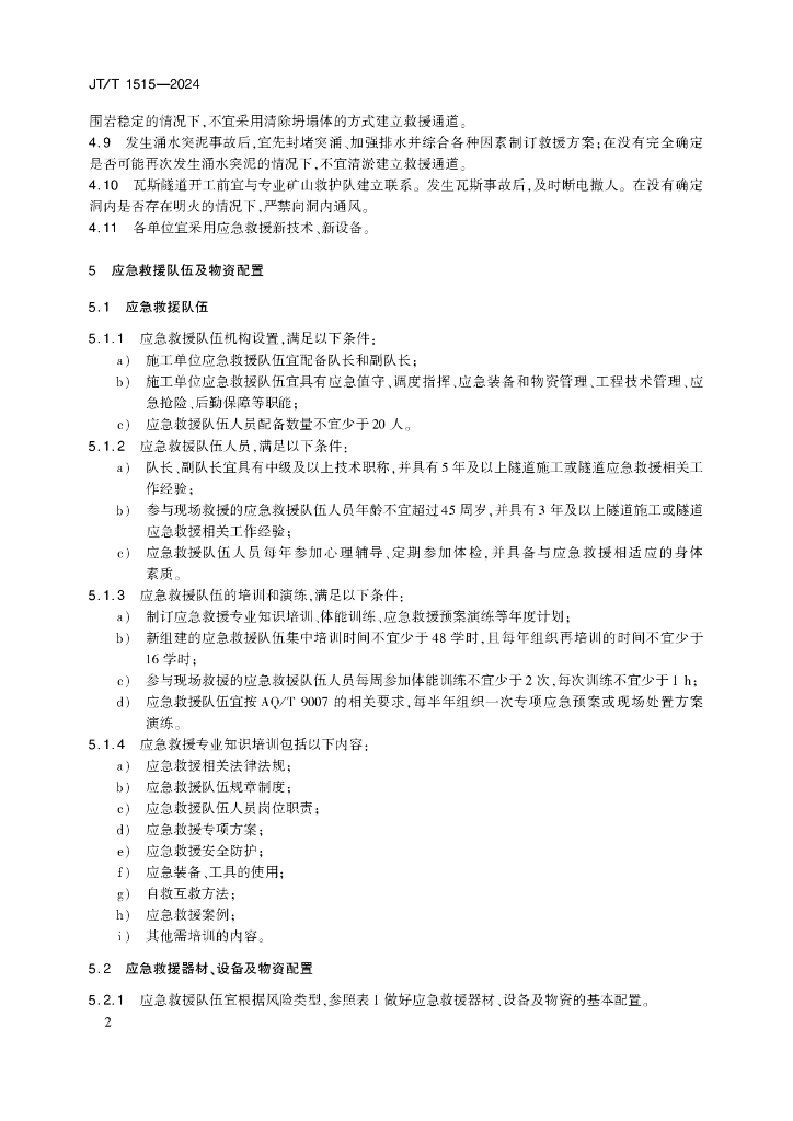 JT/T 1515-2024 公路隧道工程施工应急抢险救援技术指南