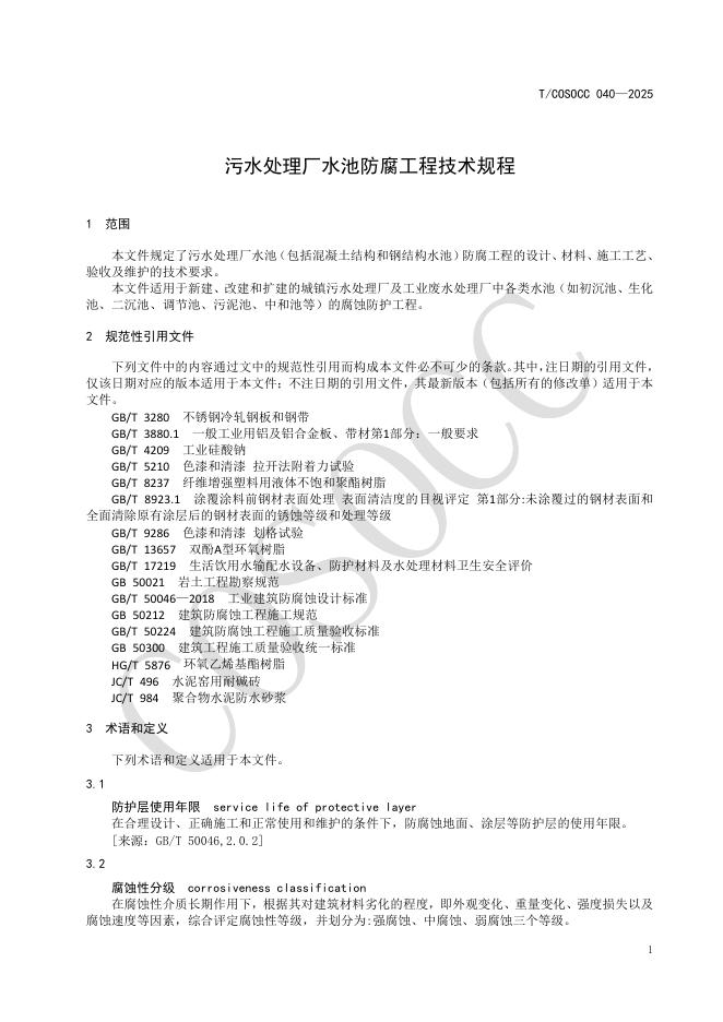 T/COSOCC 040-2025 污水处理厂水池防腐工程技术规程
