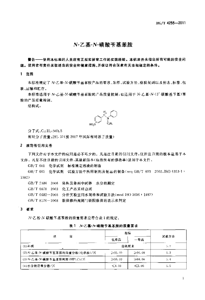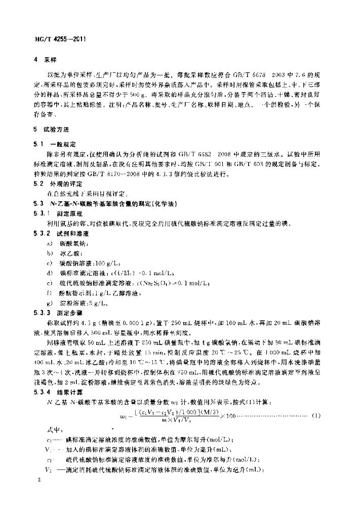 HG/T 4255-2011 N-乙基-N-磺酸苄基苯胺