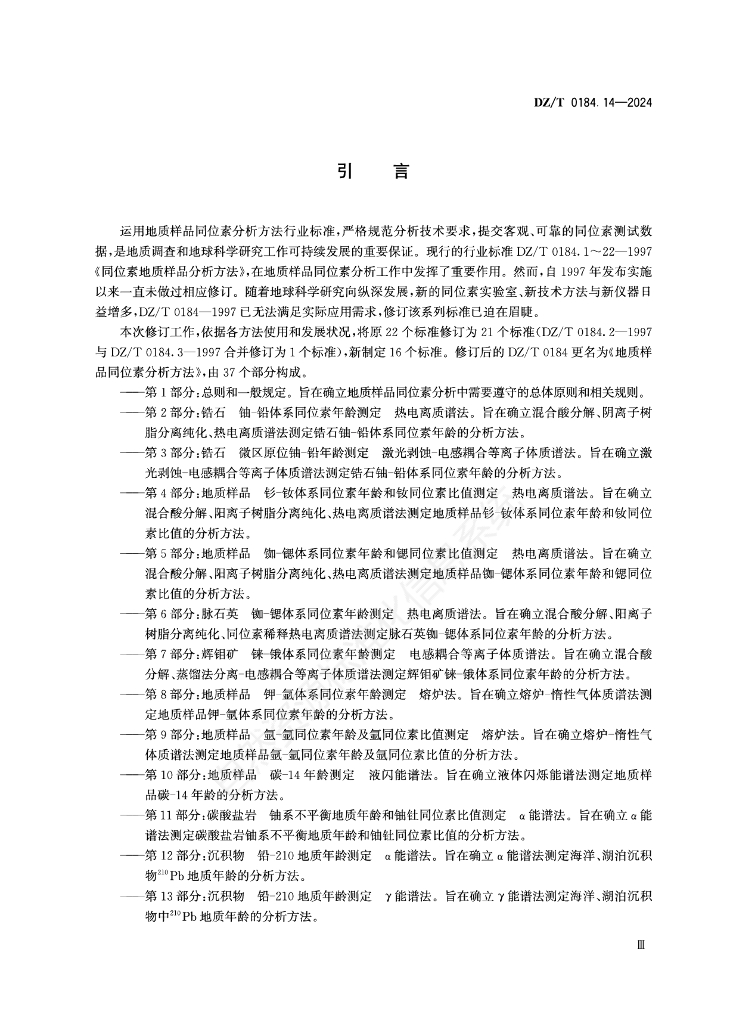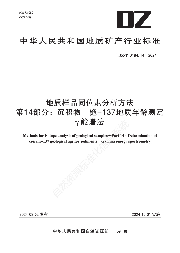 DZ/T 0184.14-2024 地质样品同位素分析方法 第14部分:沉积物 铯-137地质年龄测定 γ能谱法
