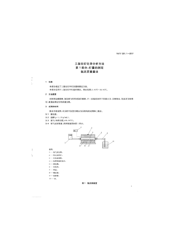 YS/T 1201.1-2017 三氯化钌化学分析方法 第1部分:钌量的测定氢还原重量法
