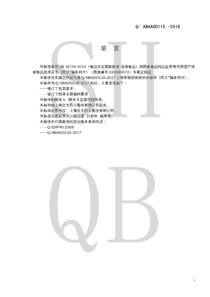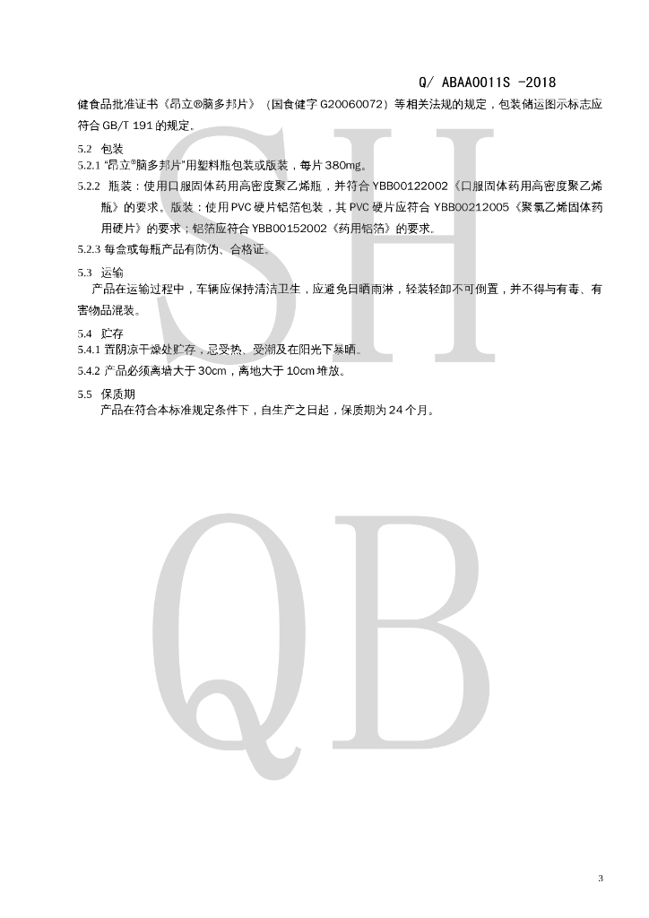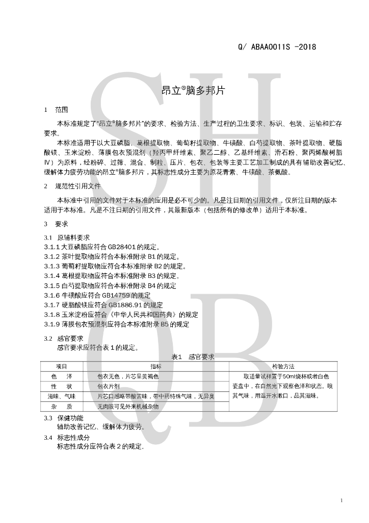 Q/ABAA 0011S-2018 昂立®脑多邦片