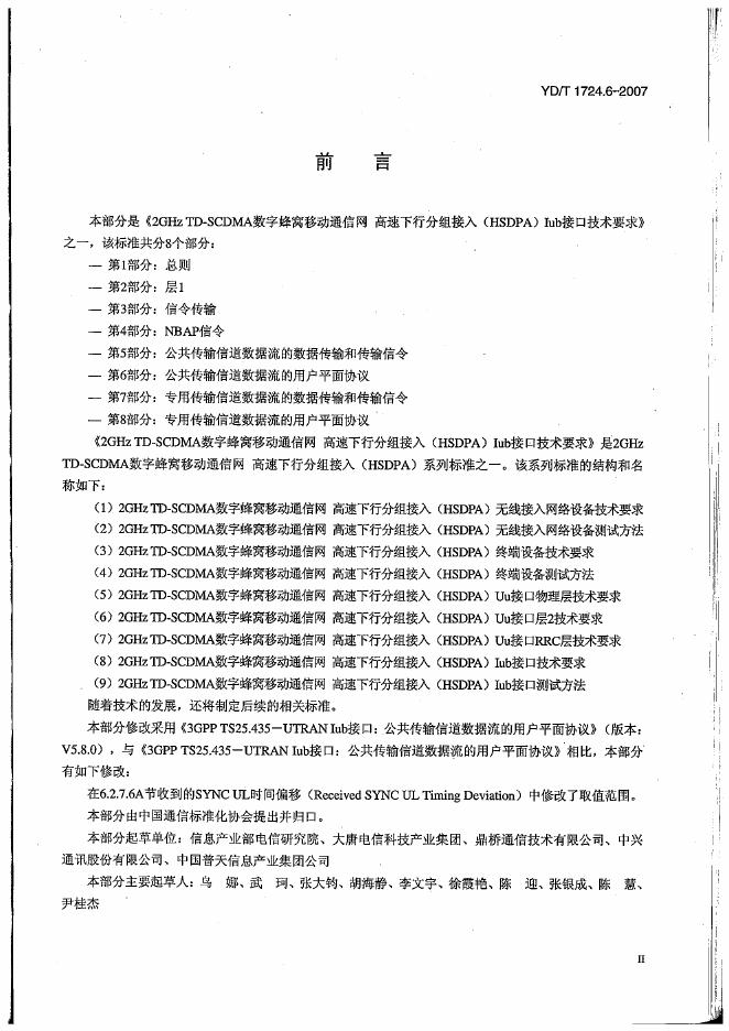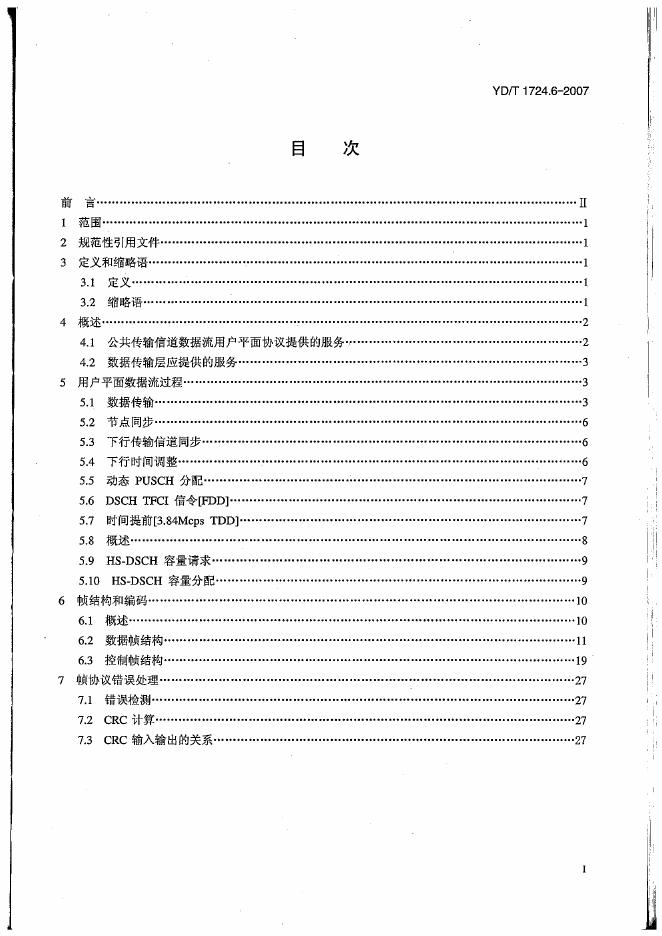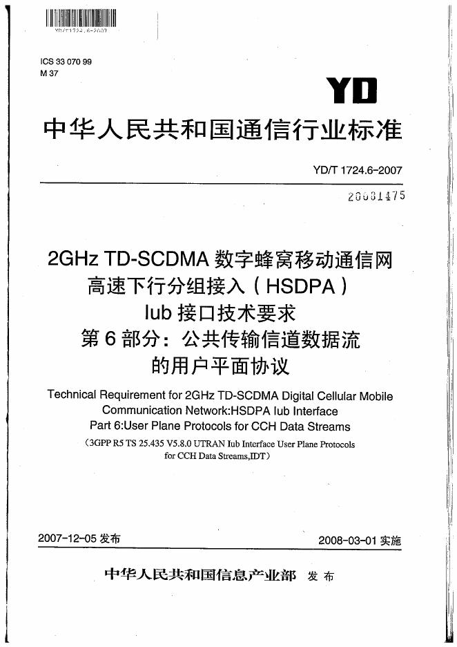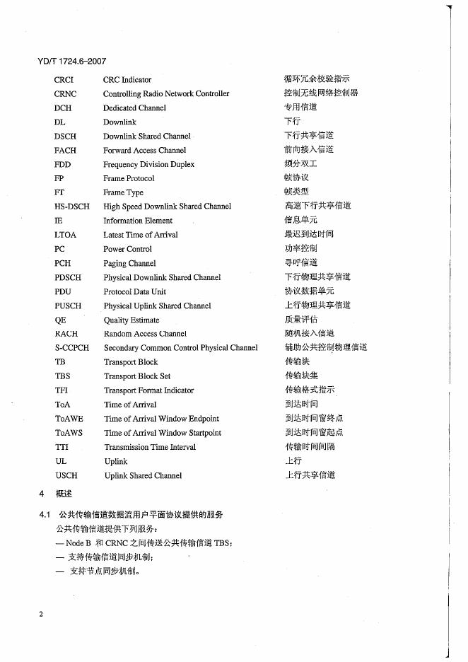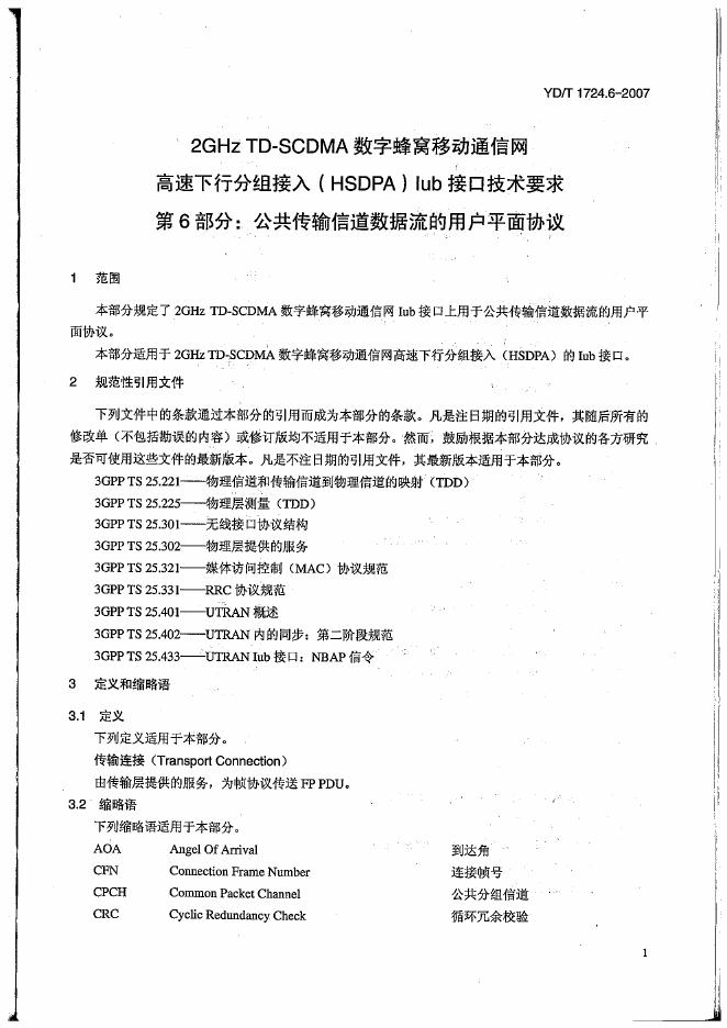 YD/T 1724.6-2007 2GHz TD-SCDMA数字蜂窝移动通信网 高速下行分组接入(HSDPA)Iub接口技术要求 第6部分:公共传输信道数据流的用户平面协议