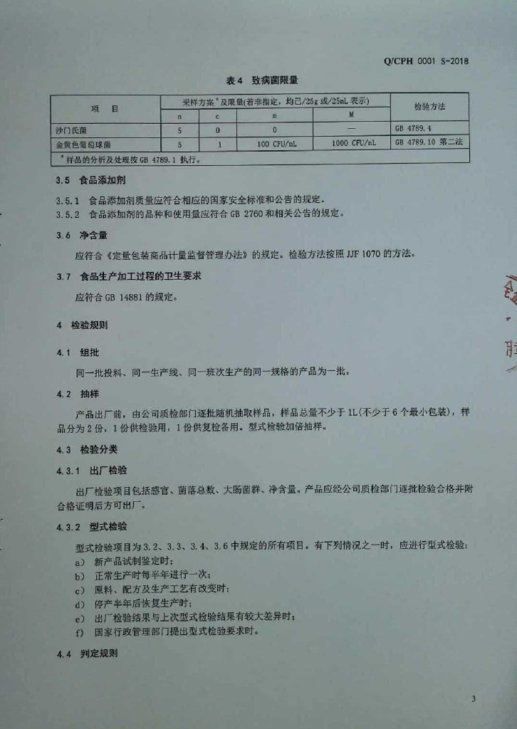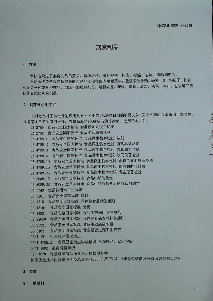 Q/CPH 0001S-2018 燕窝制品