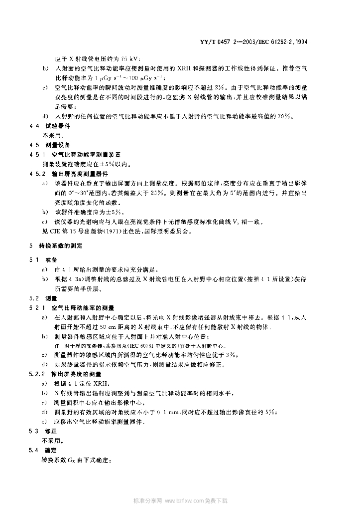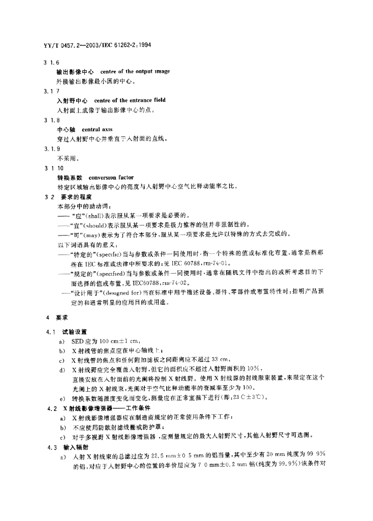 YY/T 0457.2-2003/IEC 61262-2.1994 医用电气设备光电X射线影像增强器特性 第2部分:转换系数的测定