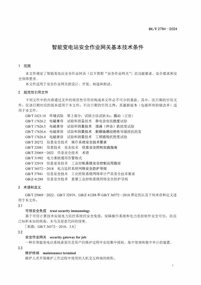 DL/T 2784-2024 智能变电站安全作业网关基本技术条件