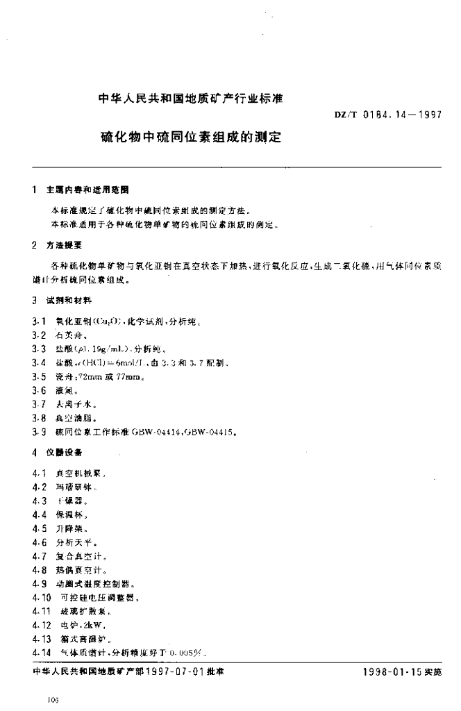 DZ/T 0184.14-1997 硫化物中硫同位素组成的测定