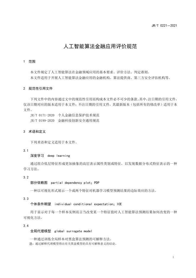 JR/T 0221-2021 人工智能算法金融应用评价规范