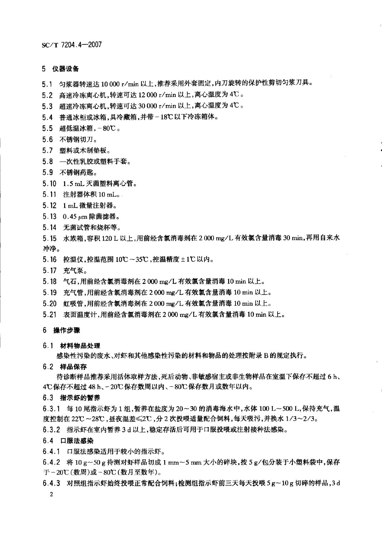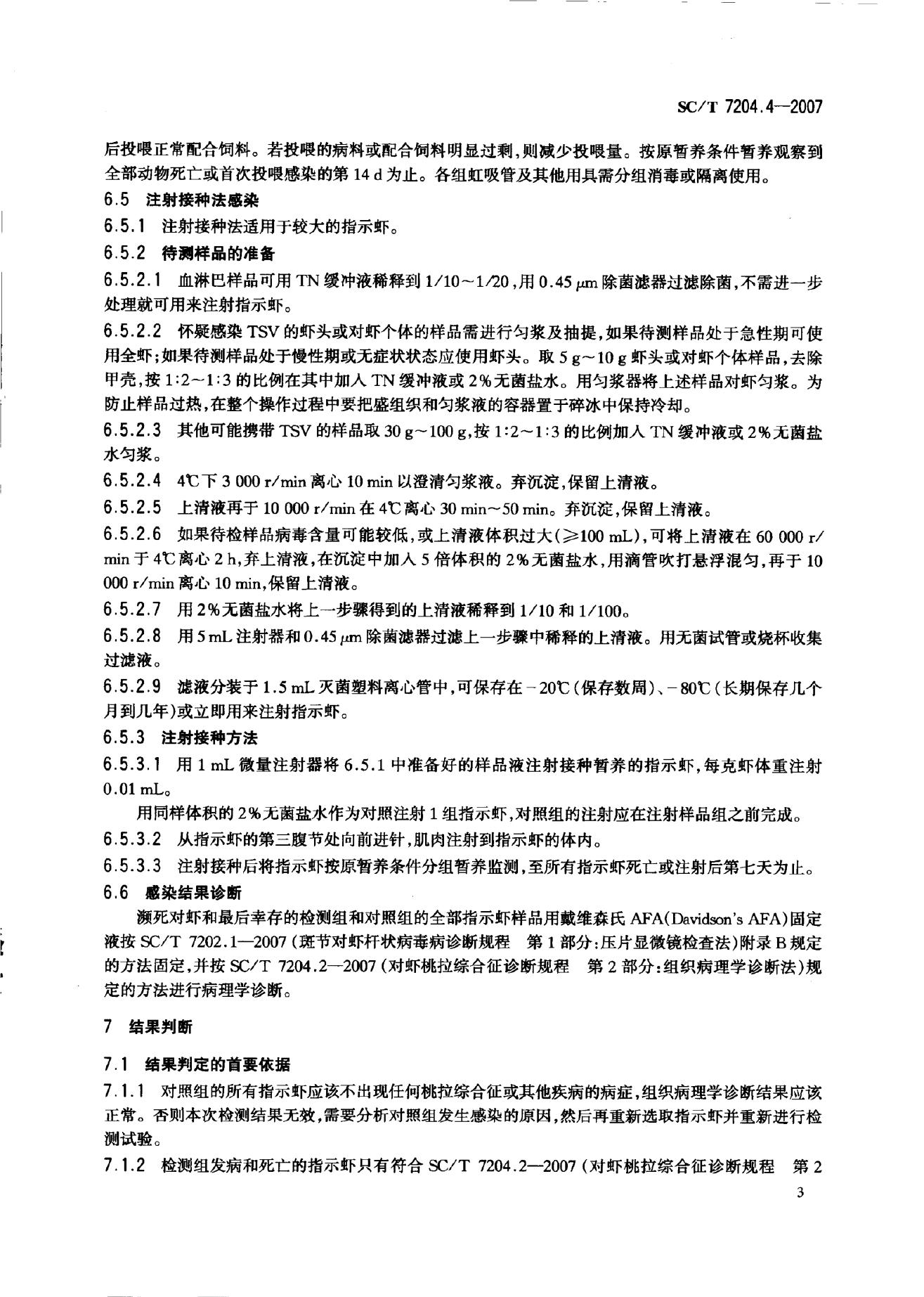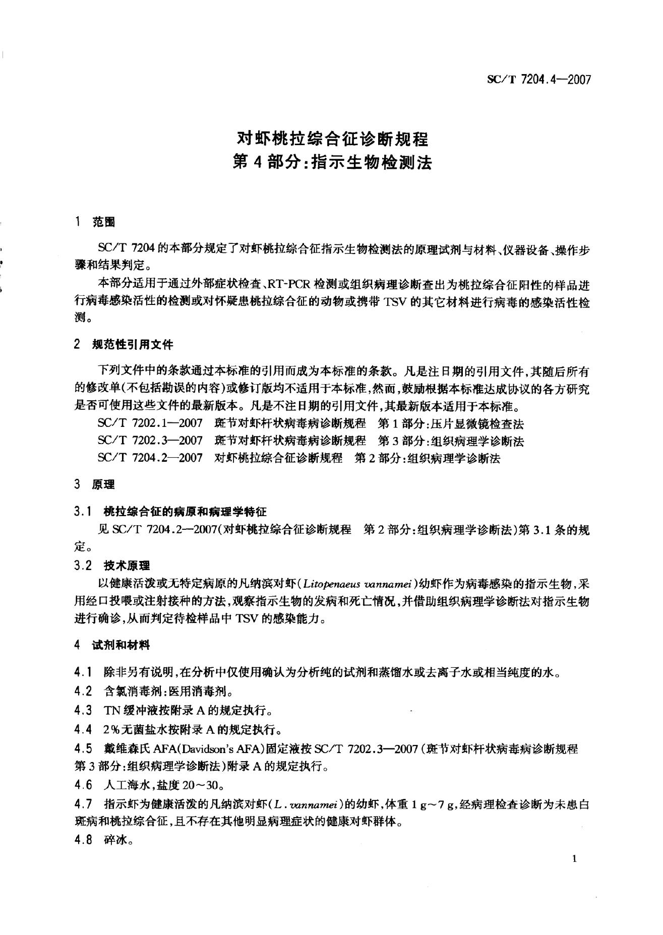 SC/T 7204.4-2007 对虾桃拉综合征诊断规程 第4部分:指示生物检测法