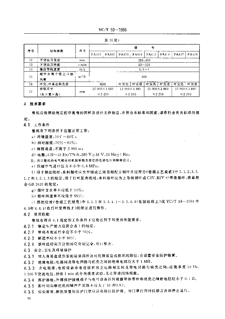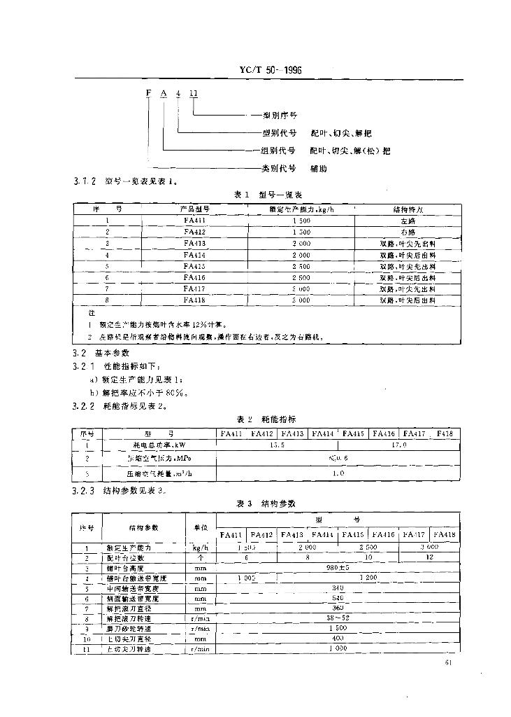 YC/T 50-1996 烟草机械FA411~418型配叶切尖解把机