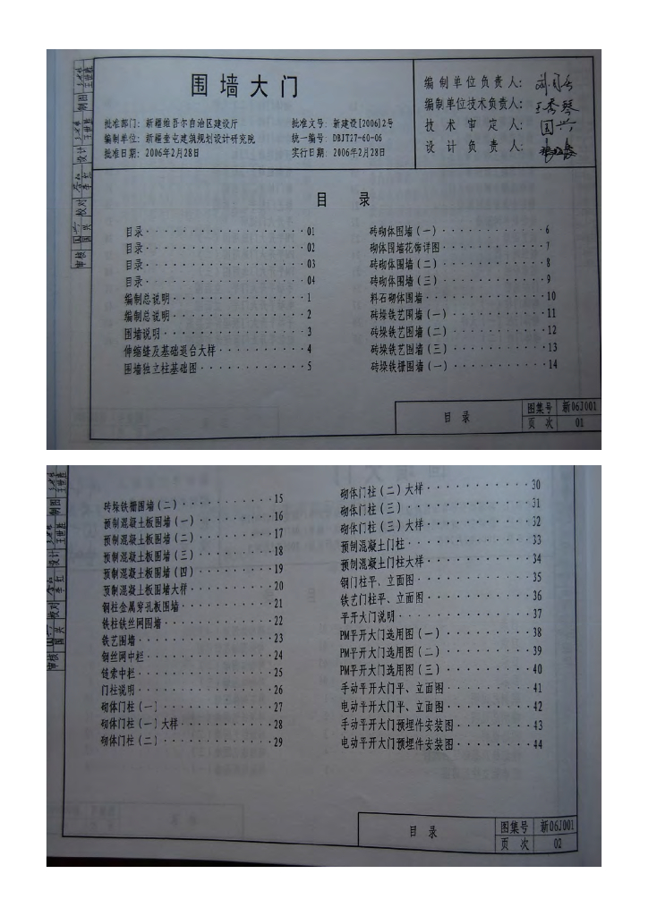 新06J001 围墙大门图集