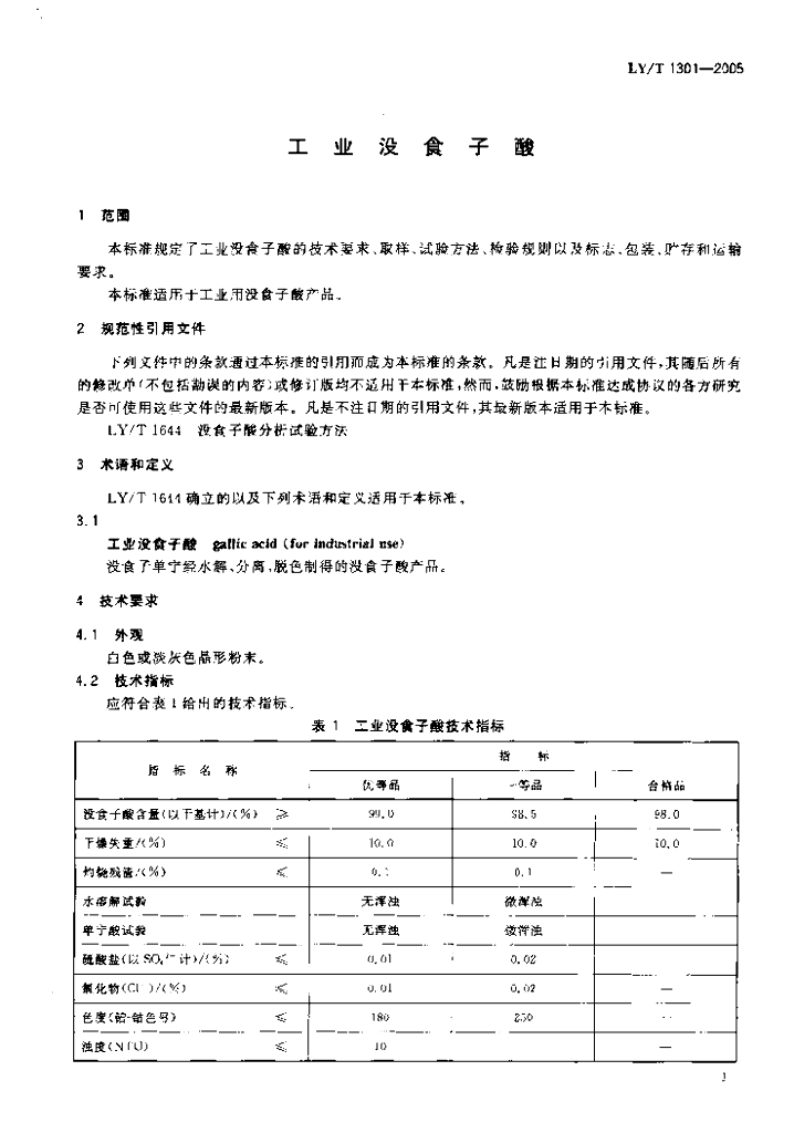 LY/T 1301-2005 工业没食子酸