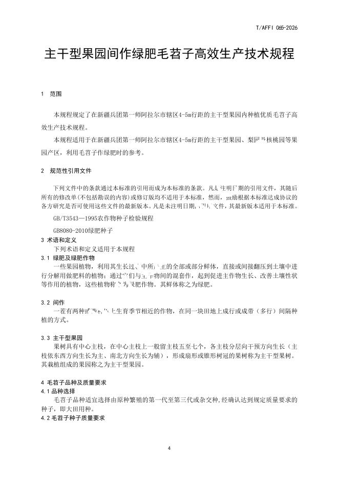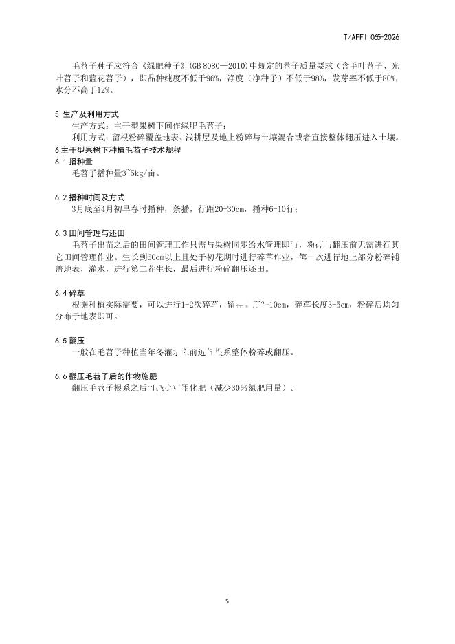 T/AFFI 065-2026 主干型果园间作绿肥毛苕子 高效生产技术规程