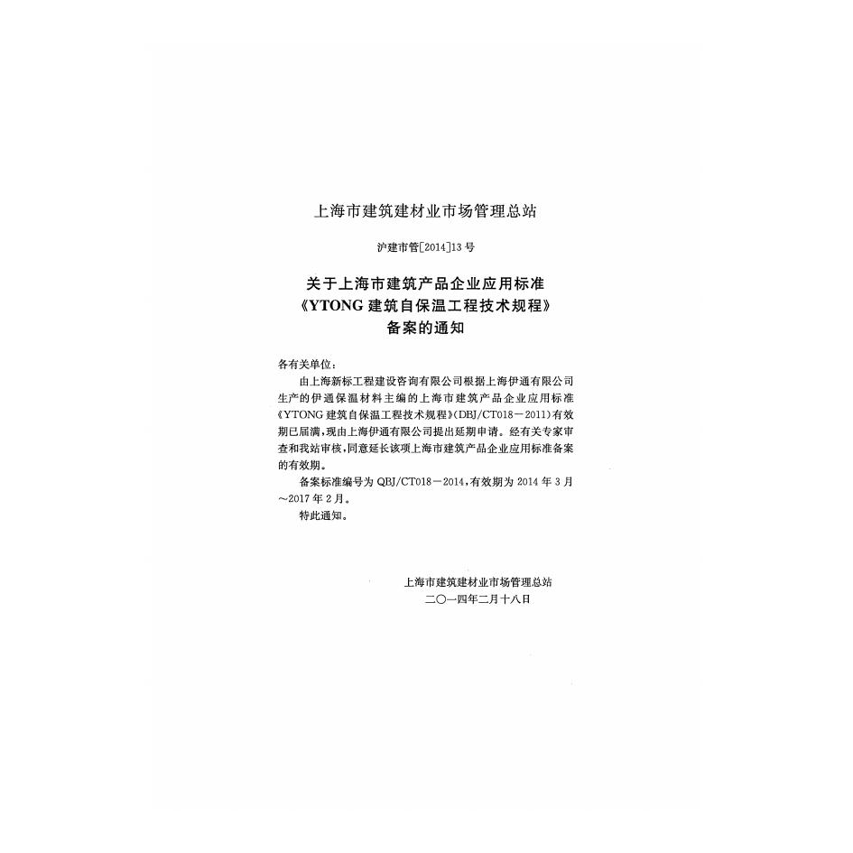 QBJCT 018-2014 YTONG建筑自保温工程技术规程