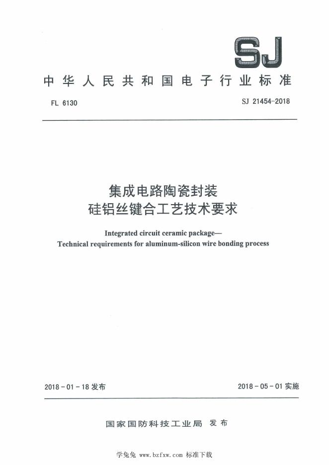SJ 21454-2018 集成电路陶瓷封装 硅铝丝键合工艺技术要求