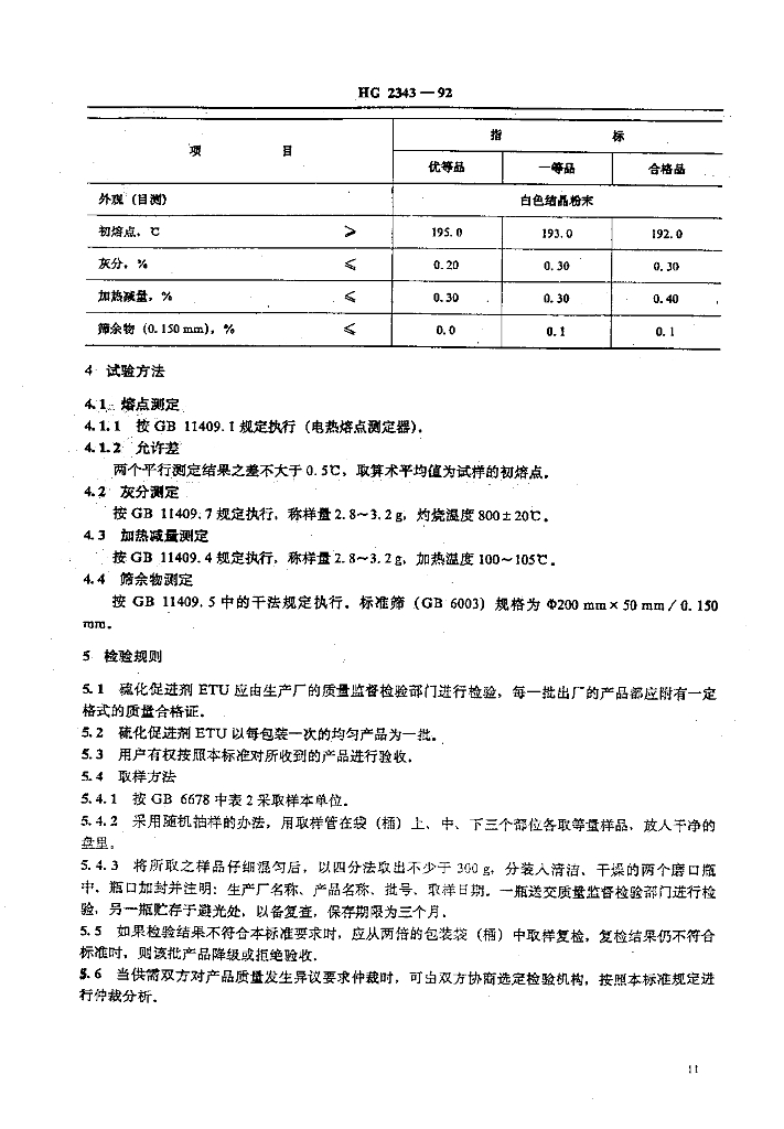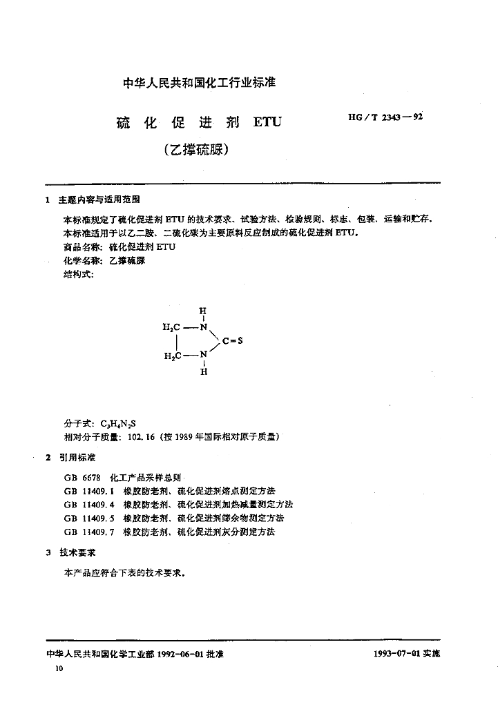 HG/T 2343-1992 硫化促进剂 ETU (乙撑硫脲)