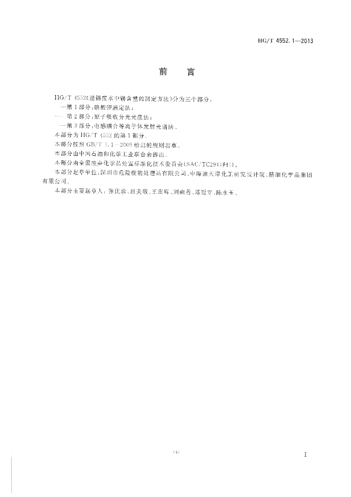 HG/T 4552.1-2013 退锡废水中锡含量的测定方法 第1部分:碘酸钾滴定法