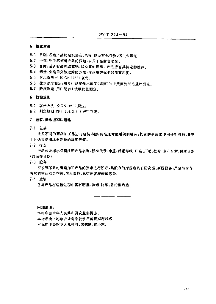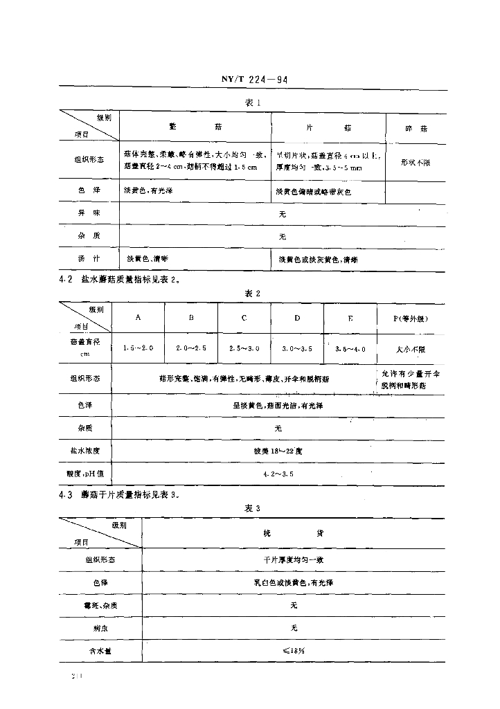 NY/T 224-1994 双孢蘑菇