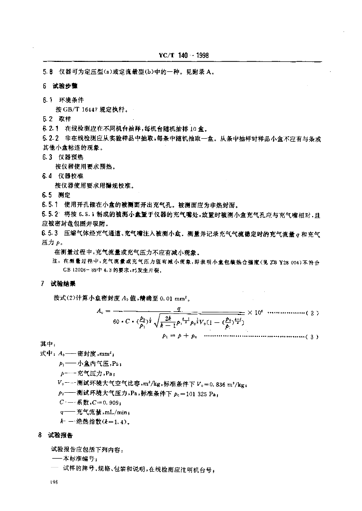 YC/T 140-1998 卷烟 小盒密封度的测定 充气法