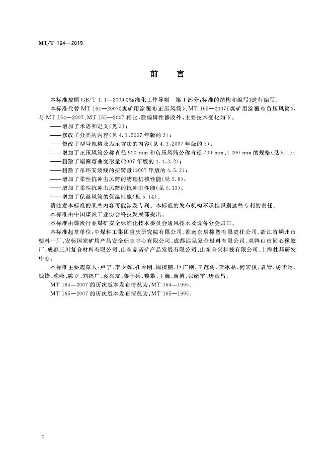 MT/T 164-2019 矿用涂覆布风筒通用技术条件
