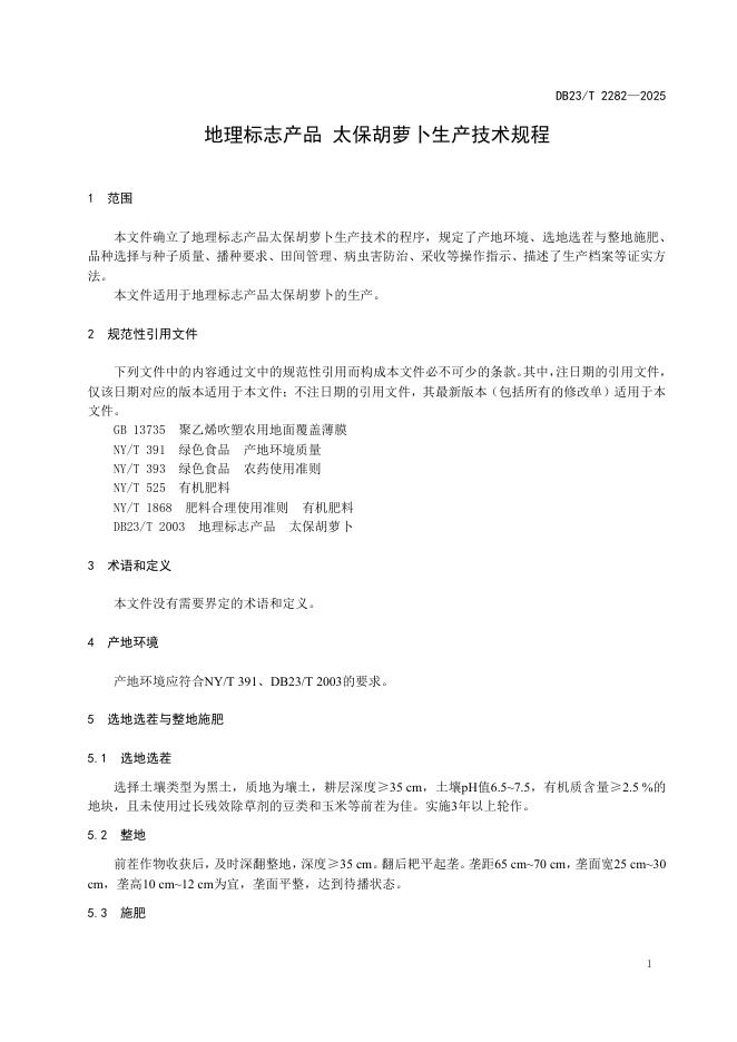 DB23/T 2282-2025 地理标志产品 太保胡萝卜生产技术规程