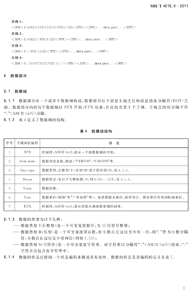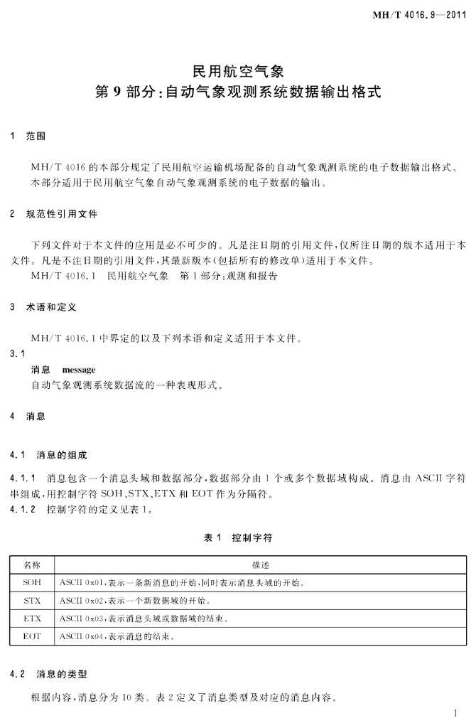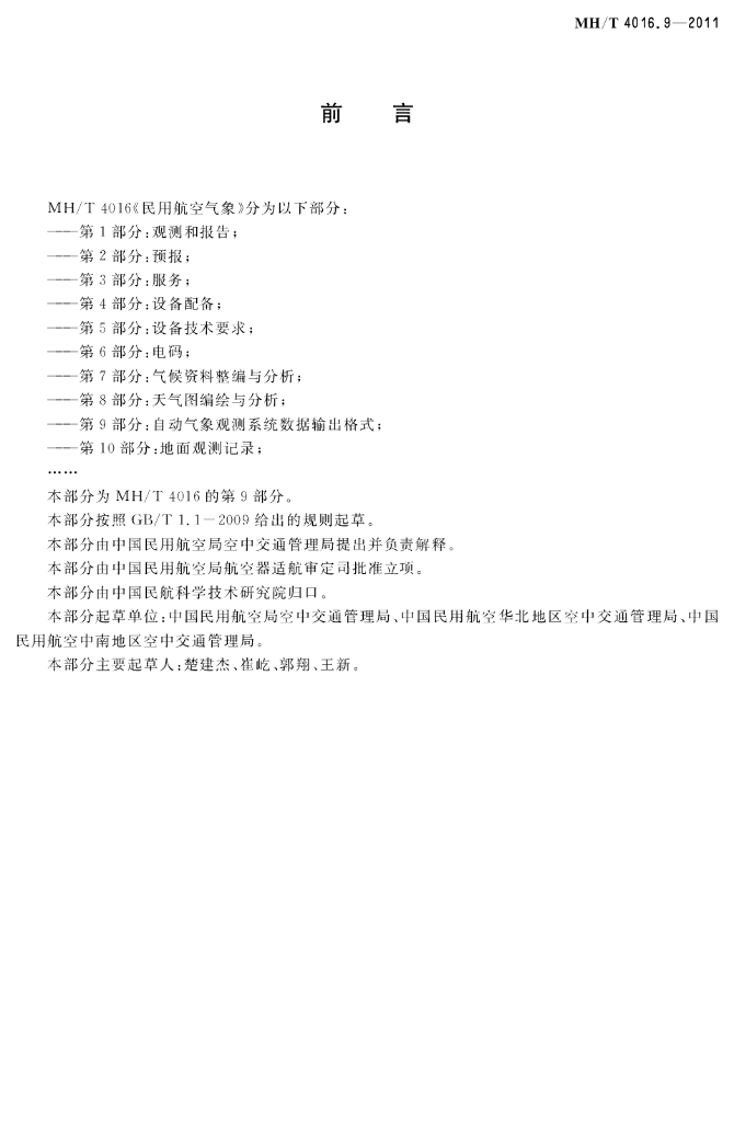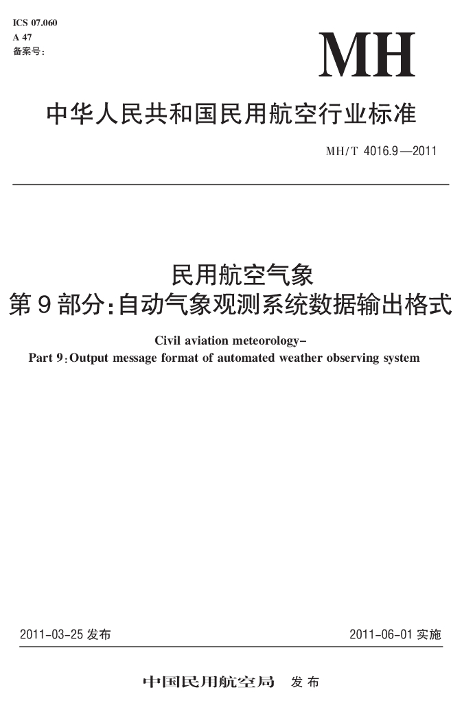 MH/T 4016.9-2011 民用航空气象 第9部分:自动气象观测系统数据输出格式