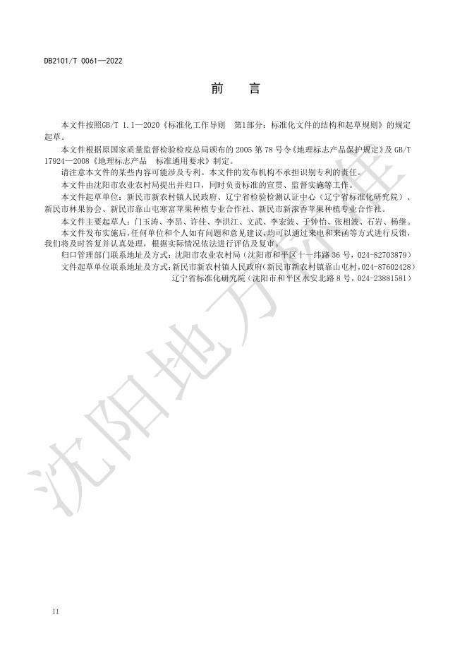 新民市新农村镇人民政府、辽宁省检验检测认证中心(辽宁省标准化研究院)、新民市林果协会、新民市靠山屯寒富苹果种植专业合作社、新民市新浓香苹果种植专业合作社