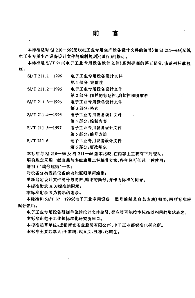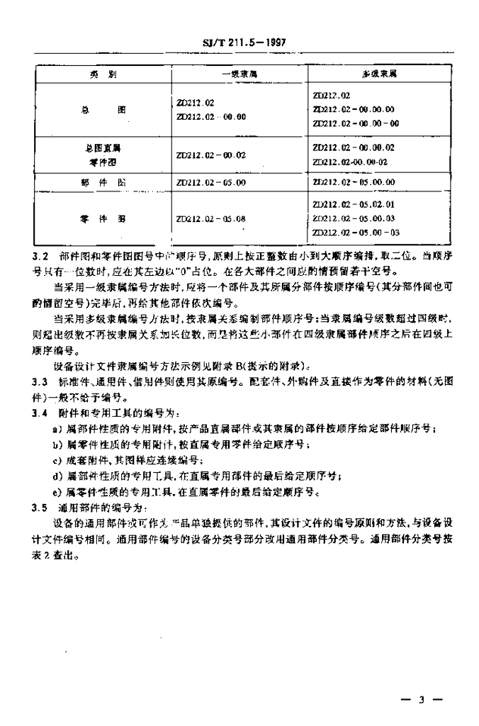 SJ/T 211.5-1997 电子工业专用设备设计文件 第5部分 编号方法