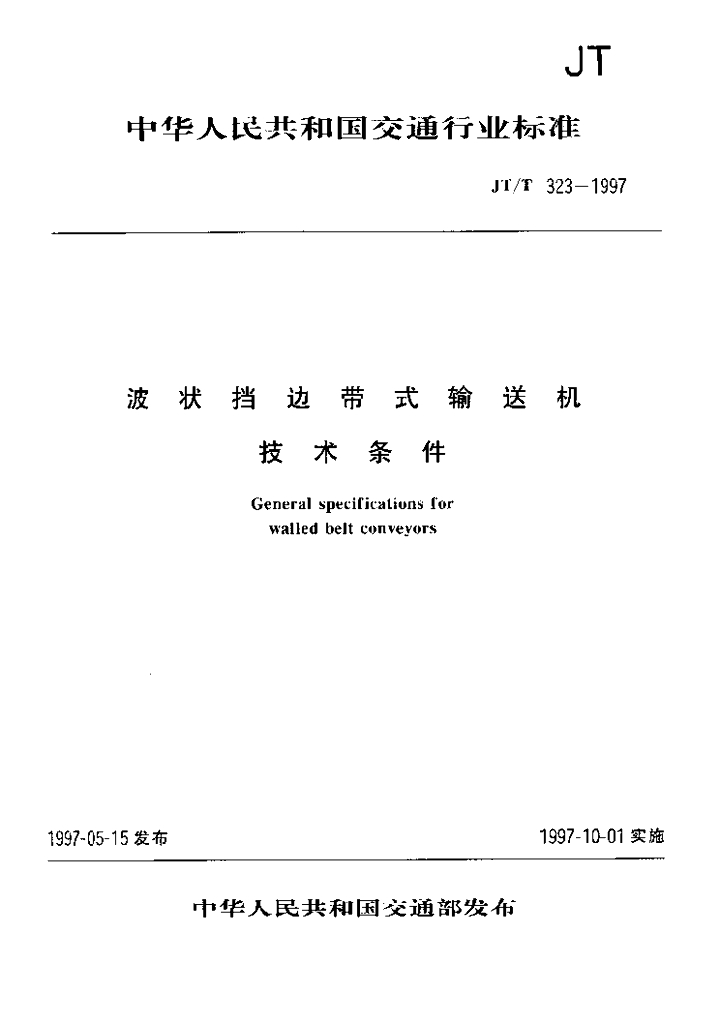 JT/T 323-1997 波状挡边带式输送机技术条件