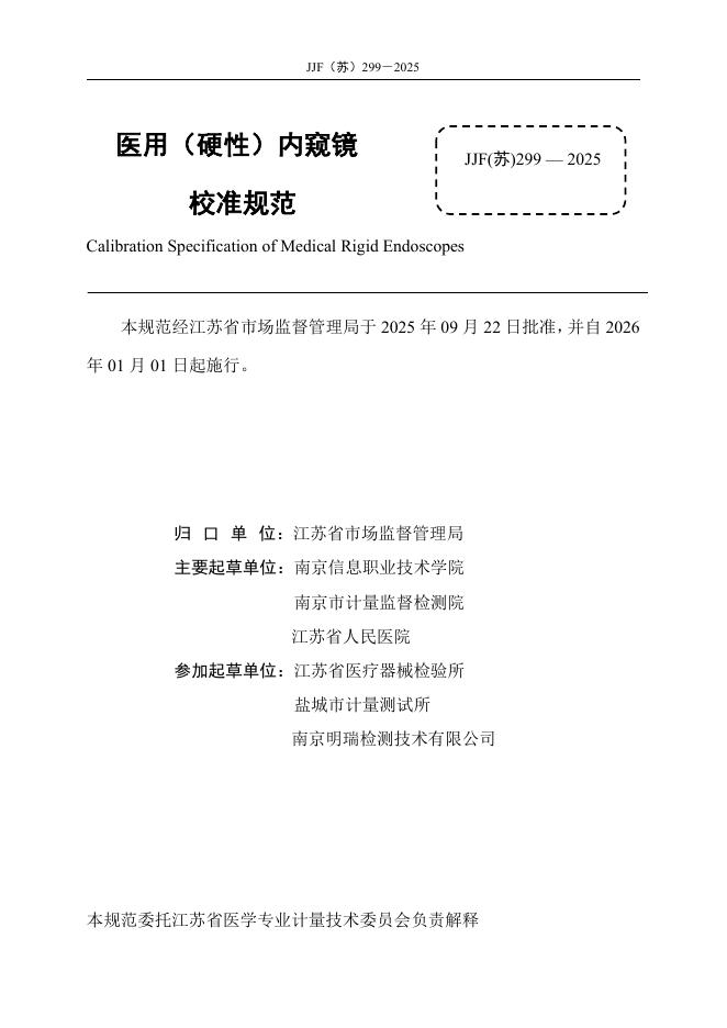 JJF(苏)299-2025 医用(硬性)内窥镜校准规范