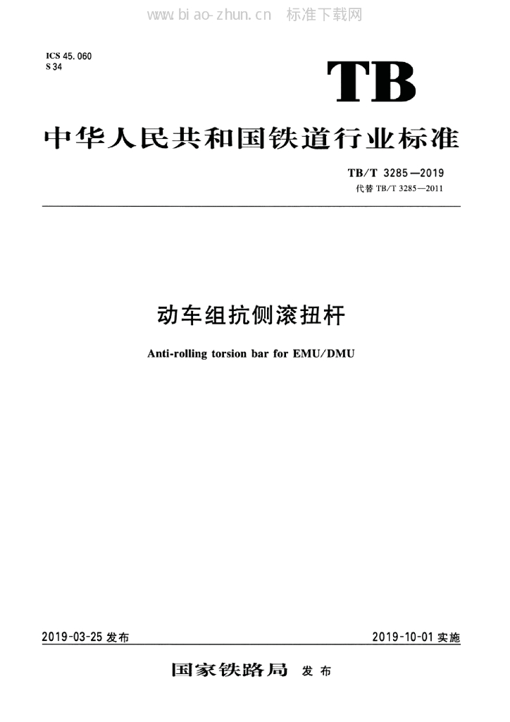 - 代替标准:TB/T 3285-2011