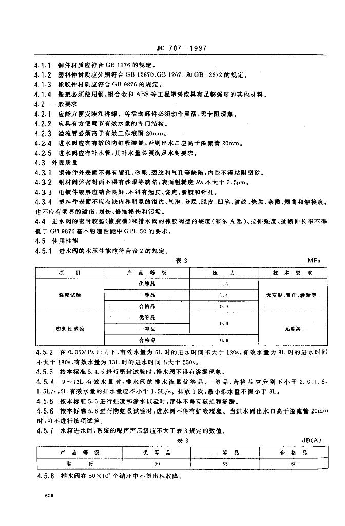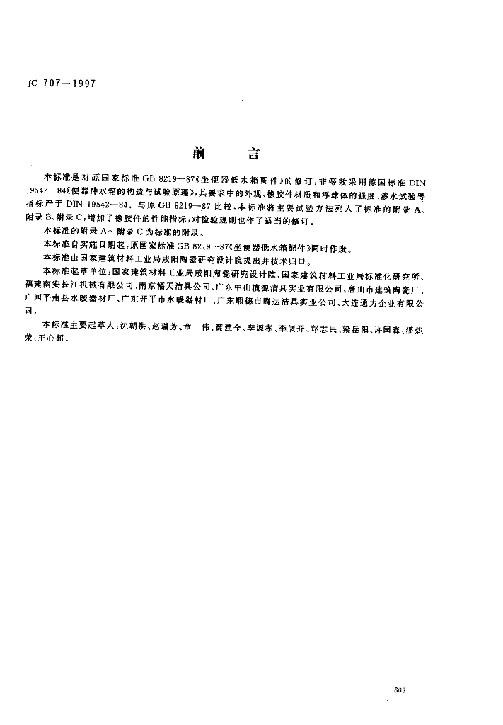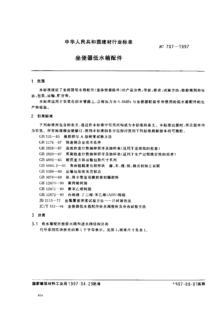 JC 707-1997 坐便器低水箱配件