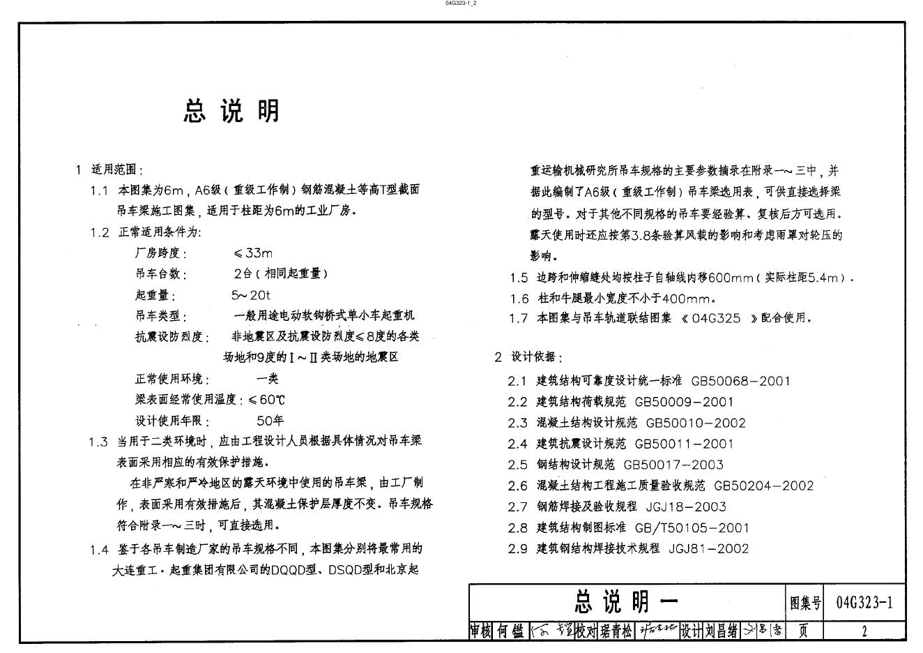 04G323-1 钢筋混凝土吊车梁(工作级别A6)图集
