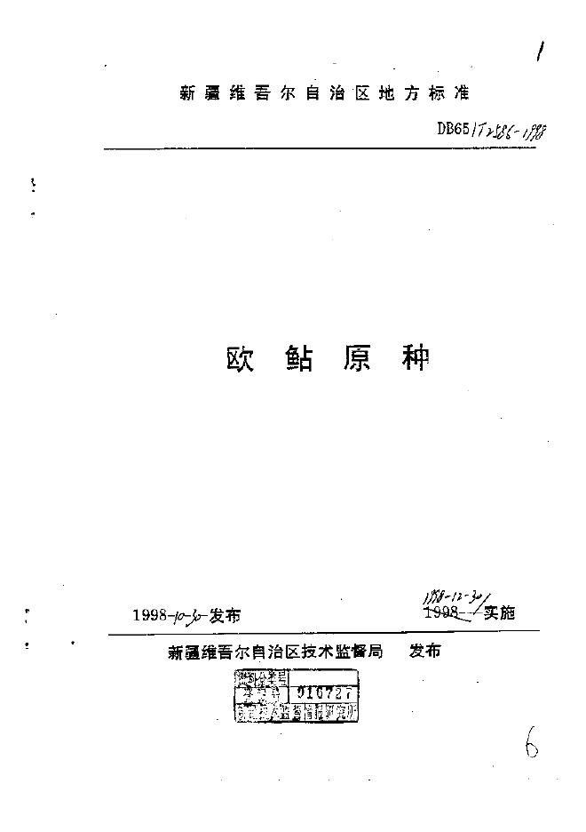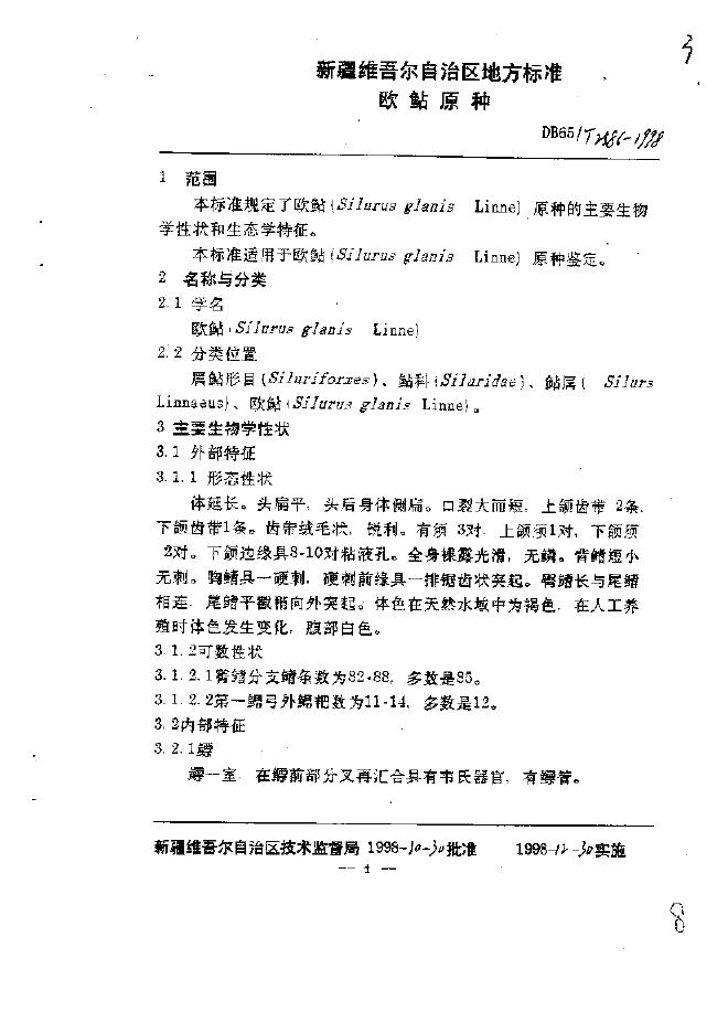 DB65/T 2586-1998 欧鲇原种