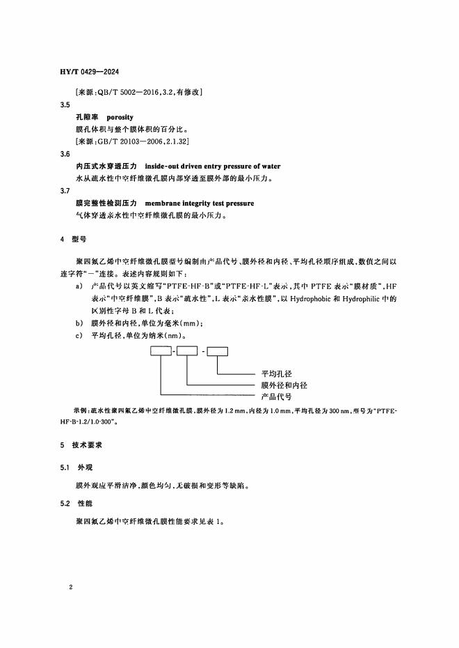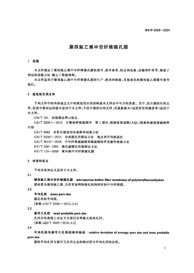 HY/T 0429-2024 聚四氟乙烯中空纤维微孔膜