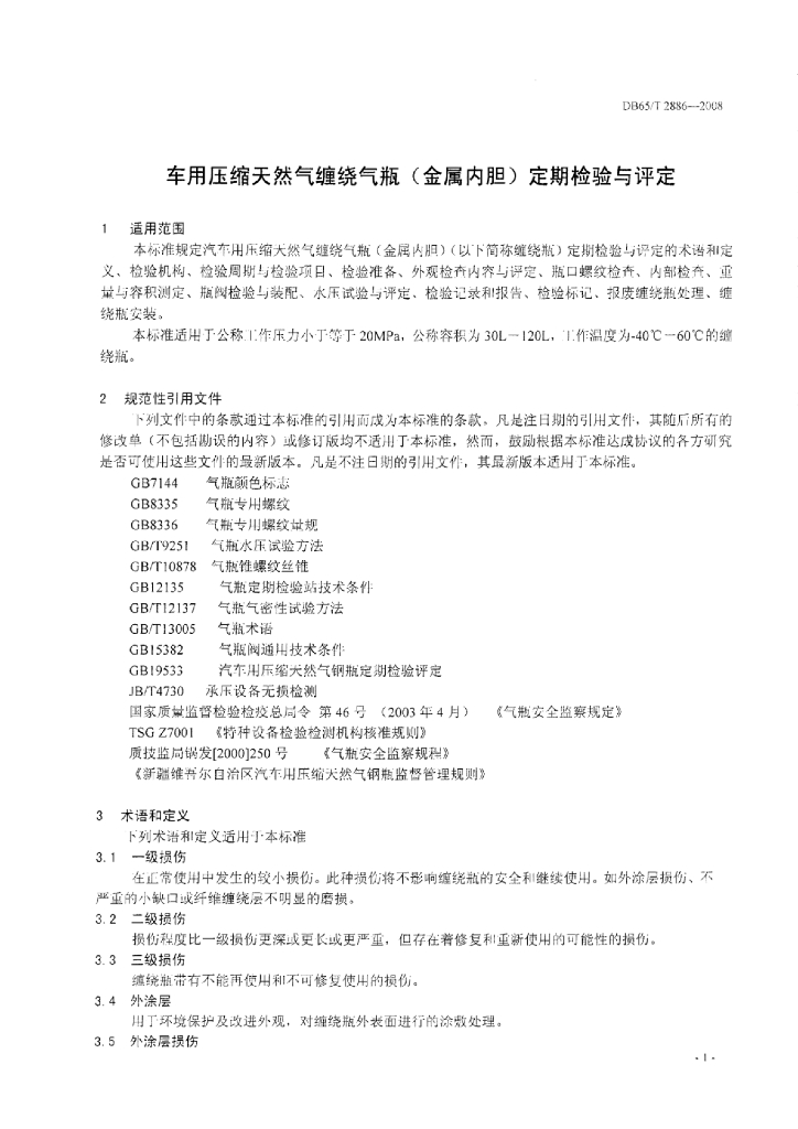 DB65/T 2886-2008 车用压缩天然气缠绕气瓶(金属内胆)定期检验与评定