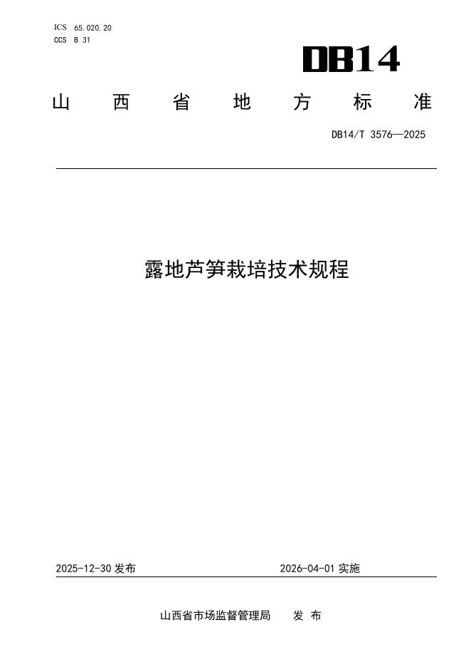 DB14/T 3576-2025 露地芦笋栽培技术规程