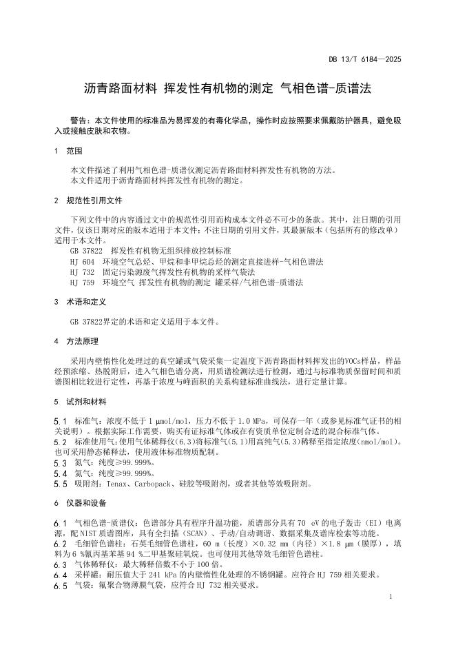 DB13/T 6184-2025 沥青路面材料 挥发性有机物的测定 气相色谱-质谱法