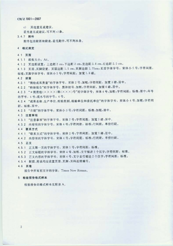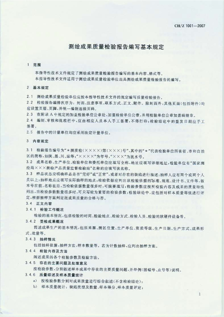 CH/Z 1001-2007 测绘成果质量检验报告编写基本规定