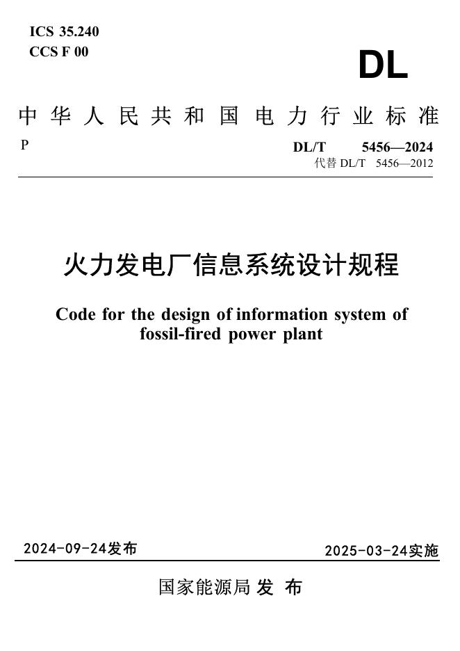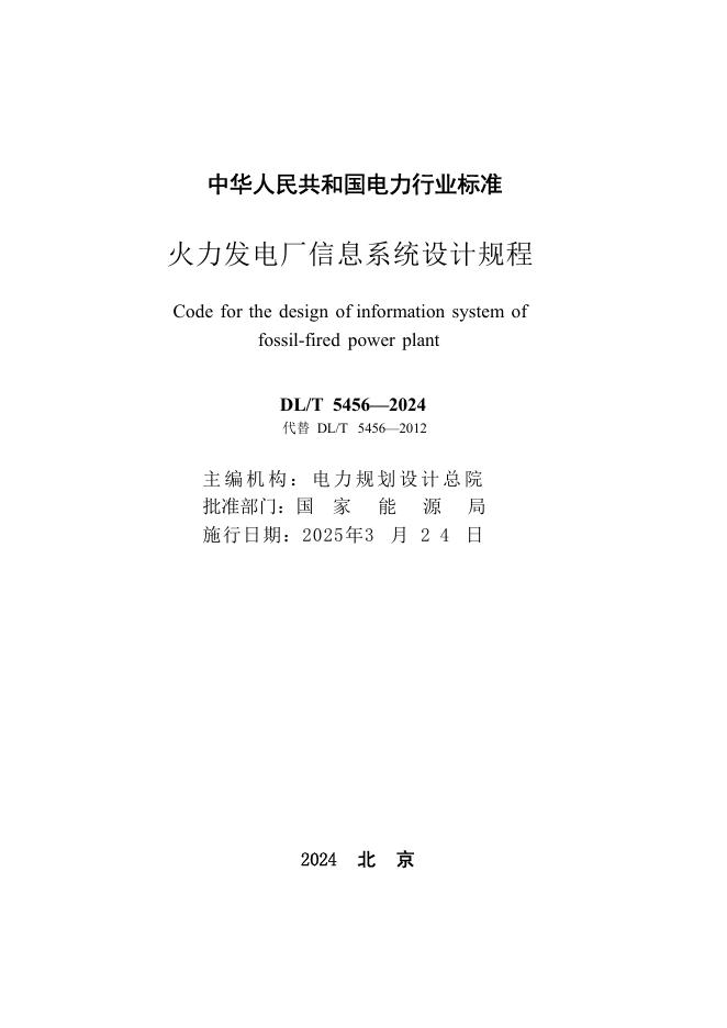 DL/T 5456-2024 火力发电厂信息系统设计规程(附条文说明)