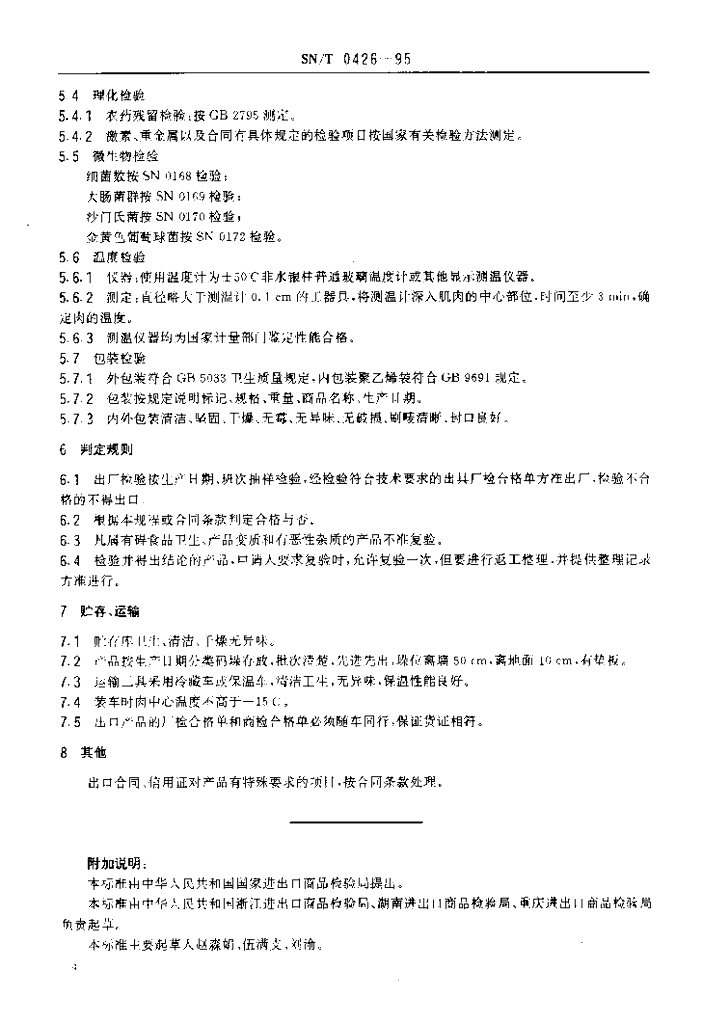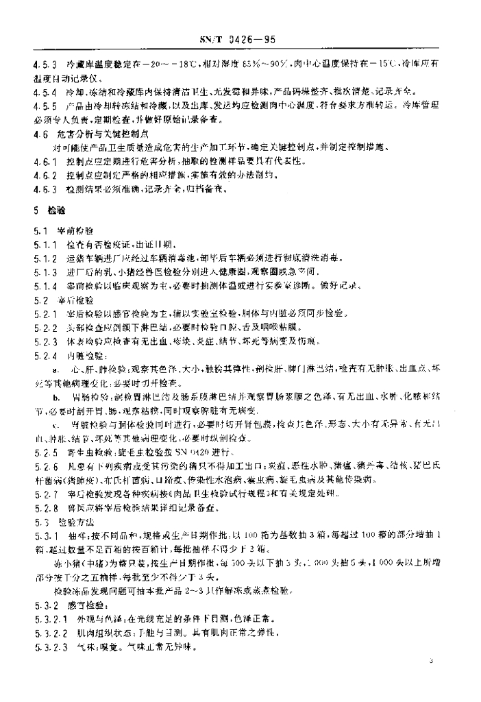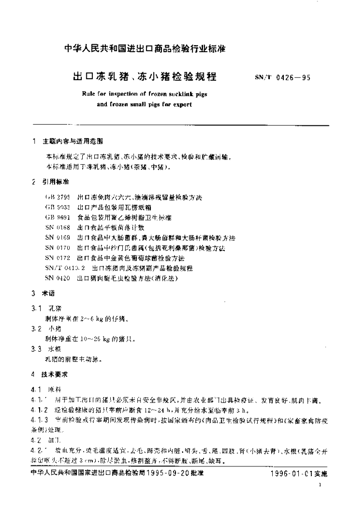 SN/T 0426-1995 出口冻乳猪、冻小猪检验规程