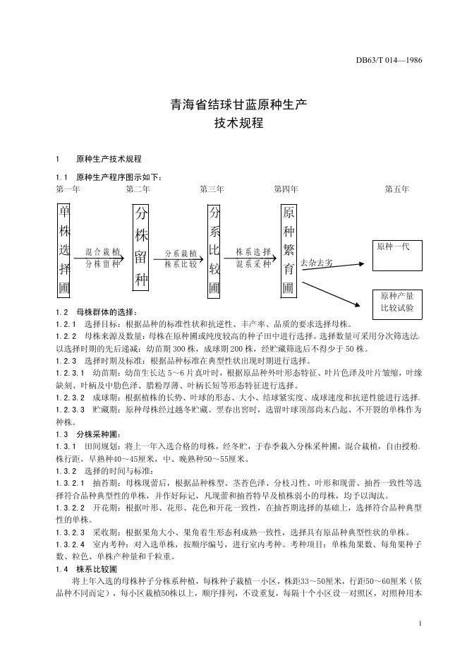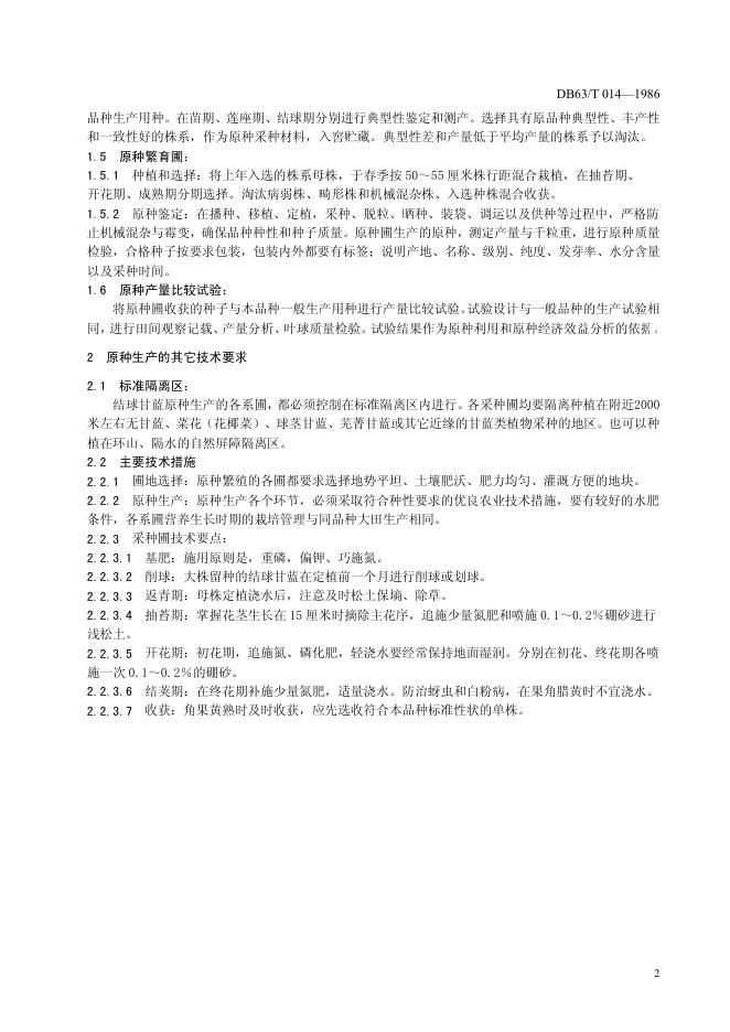 DB63/T 014-1986 结球甘蓝原种生产技术操作规程