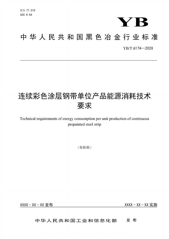 YB/T 6174-2024 连续彩色涂层钢带单位产品能源消耗技术要求
