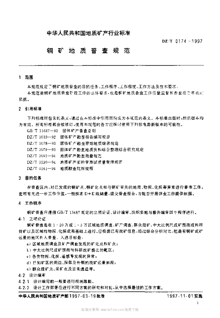 DZ/T 0174-1997 铜矿地质普查规范